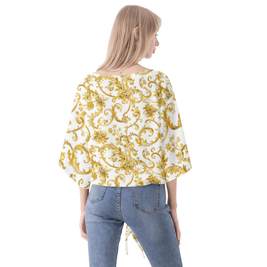 Abundance Women‘s’ V-neck Tie Front Knot Chiffon Blouse