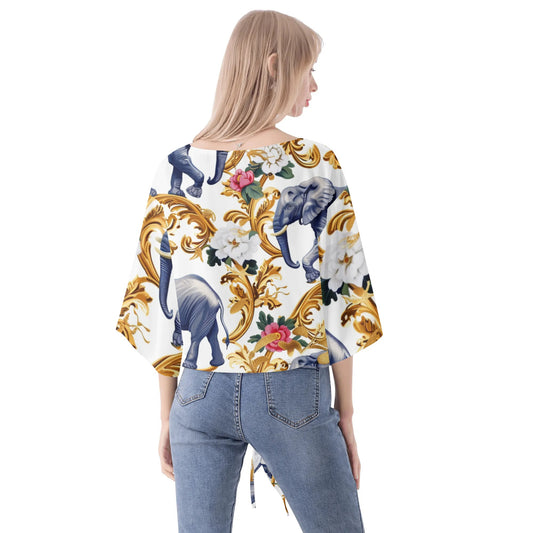 Obatala Women‘s’ V-neck Tie Front Knot Chiffon Blouse