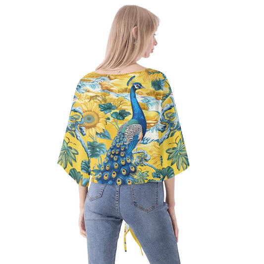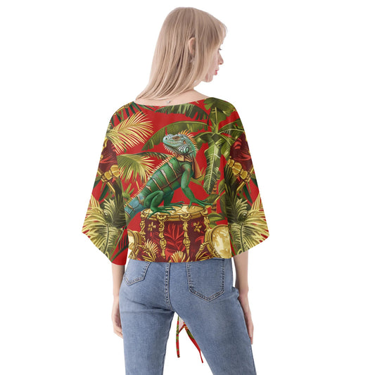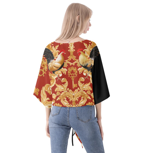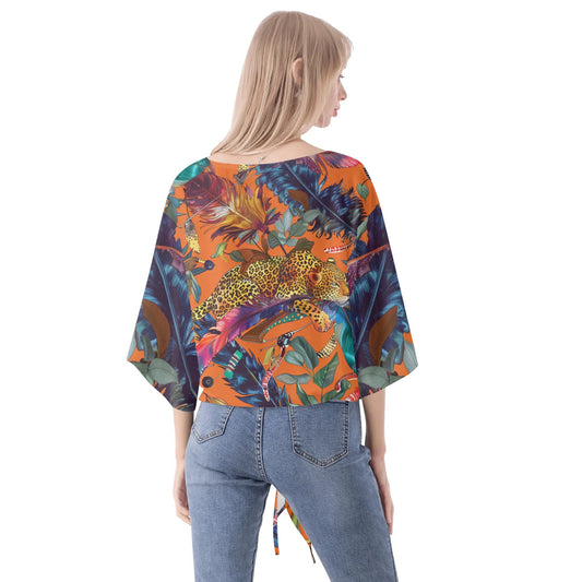 Oshun Women‘s’ V-neck Tie Front Knot Chiffon Blouse