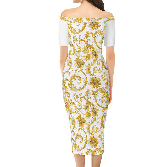 Creation Womens Off The Shoulder Short Sleeve Elegant Wrap Dress